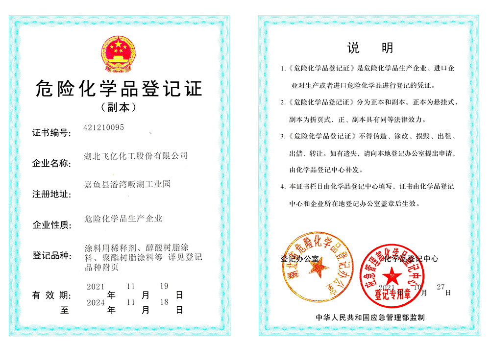 湖北飛億化工股份有限公司成立于2005年,專業(yè)從事各種油漆涂料稀釋劑的生產批發(fā),經過公司全體員工的多年拼搏與努力,本著客戶至上、誠信至上、質量至上的三上原則和高素質、高效率、高品質的三高理念,公司在木器稀釋劑行業(yè)中取得了不菲的成績。在公司以批發(fā)為主的行銷原則下,在湖北、湖南、浙江、山東、山西、陜西、江西、貴州、廣西、廣東、安徽、河南、河北、江蘇、甘肅、青海、西藏、新疆等地建立了良好和健康的銷售網絡。湖北飛億化工股份有限公司以人為本、倡導學習。經過多年的凝聚和歷練,公司擁有豐富實踐經驗的技術人員和銷售、生產的團隊,不斷研發(fā)適合市場和客戶的高質量產品。并努力爭取各項產品和服務達到客戶滿意。為滿足市場和客戶要求,湖北飛億化工股份有限公司于2013年投資興建了占地30000平方的集生產、檢測、庫存于一體的現代化生產基地,公司熱忱歡迎有志之士與我們共同成長、共同壯大和共同發(fā)展。